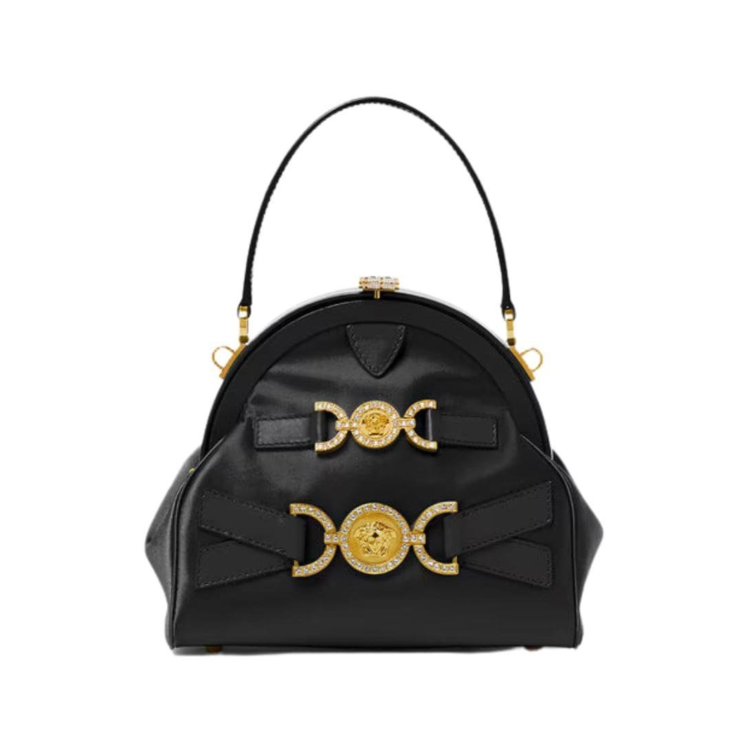 The centerpiece of the Greca Goddess Clutch is the iconic Medusa head emblem, a signature of Versace’s design language. This emblem is often rendered in gleaming gold-tone metal, providing a striking contrast against the leather backdrop and adding a hint of regal glamour. The Medusa motif is not just a decorative element but a symbol of power, allure, and mystery, perfectly encapsulating the Versace aesthetic.
