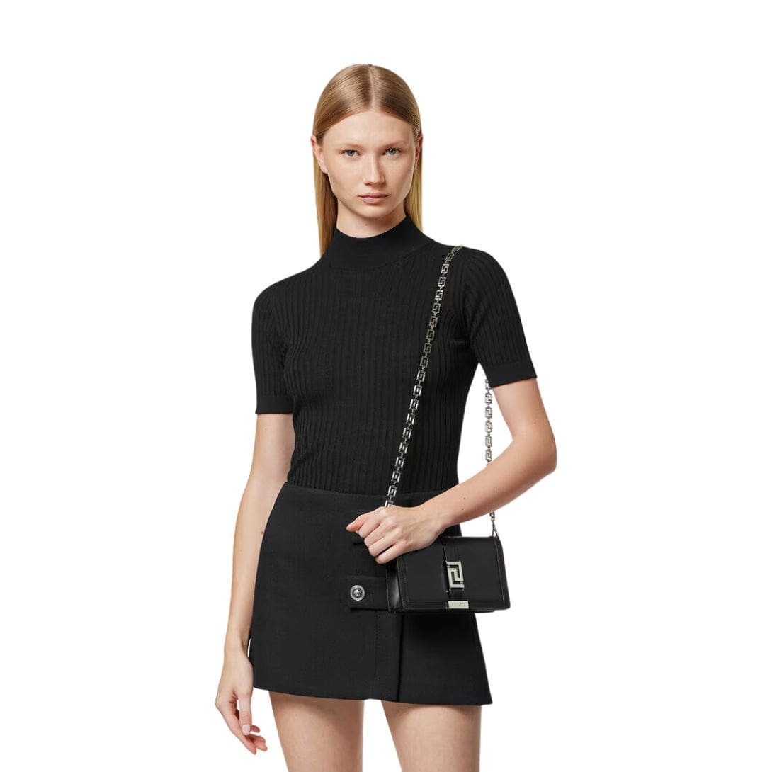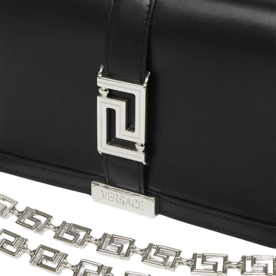 The bag features the signature Greca pattern, a hallmark of Versace’s design heritage, intricately embossed or printed on high-quality leather. This motif not only adds a touch of classic elegance but also a contemporary flair, making it versatile for various occasions. The Greca Goddess Mini Bag is available in several color options, including timeless black and bold hues, catering to diverse fashion preferences.