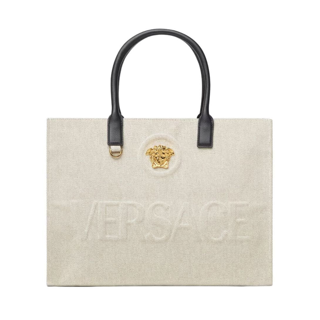 At the heart of the design lies the iconic Versace Greca motif, an emblem of the brand’s legacy and a symbol of enduring style. Adorning the bag with intricate precision, the Greca pattern adds a touch of regality and sophistication, elevating its allure to new heights.