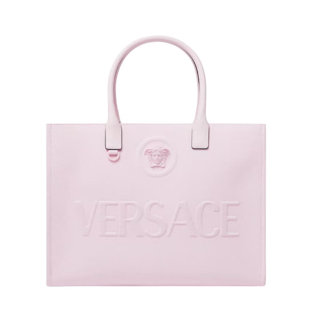 The attention to detail is evident in every aspect of the bag’s construction. From the supple leather trim to the gleaming gold-tone hardware, each element reflects Versace’s commitment to quality and luxury. The dual top handles are not only stylish but also practical, allowing for comfortable carrying whether in hand or on the forearm.