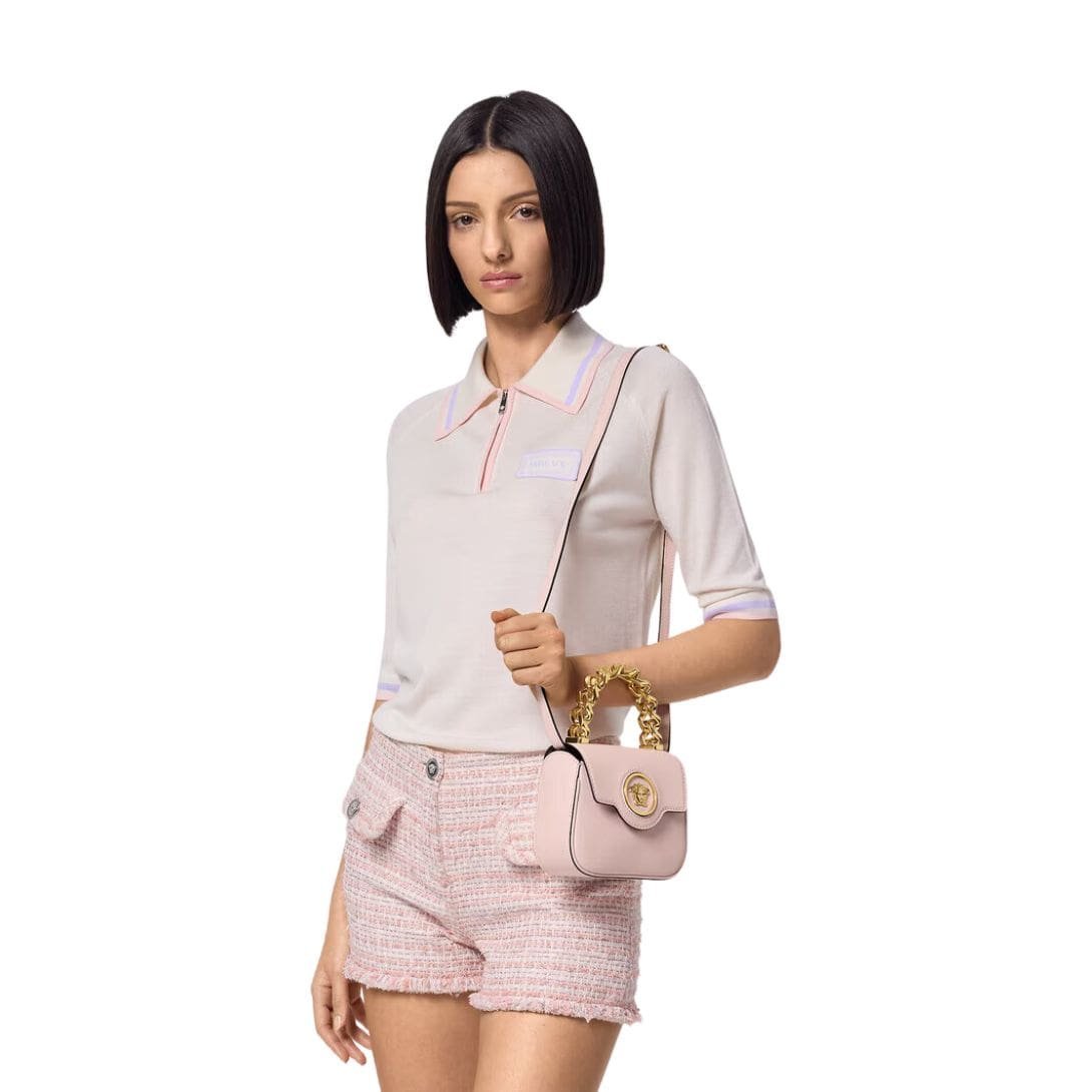 Available in a spectrum of hues ranging from timeless neutrals to vibrant jewel tones, the La Medusa Mini Bag allows for personal expression and sartorial experimentation. Whether paired with casual denim ensembles for a touch of luxury or complementing evening attire for an air of refined glamour, this accessory effortlessly elevates any look.