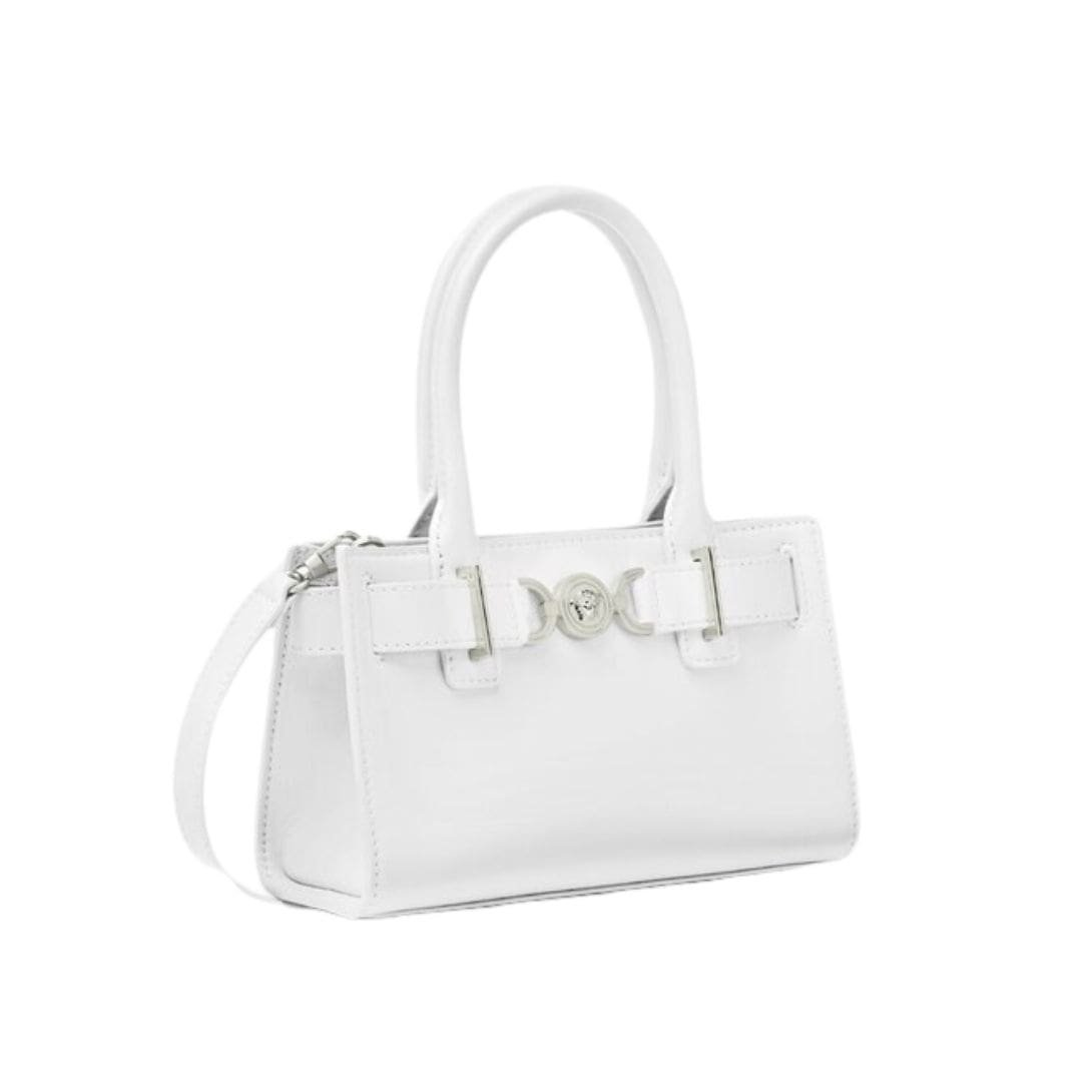 The attention to detail is evident in every aspect of the design, from the sleek and sturdy handles to the gleaming hardware accents. The iconic Medusa emblem adorns the front, serving as a symbol of power, allure, and sophistication.