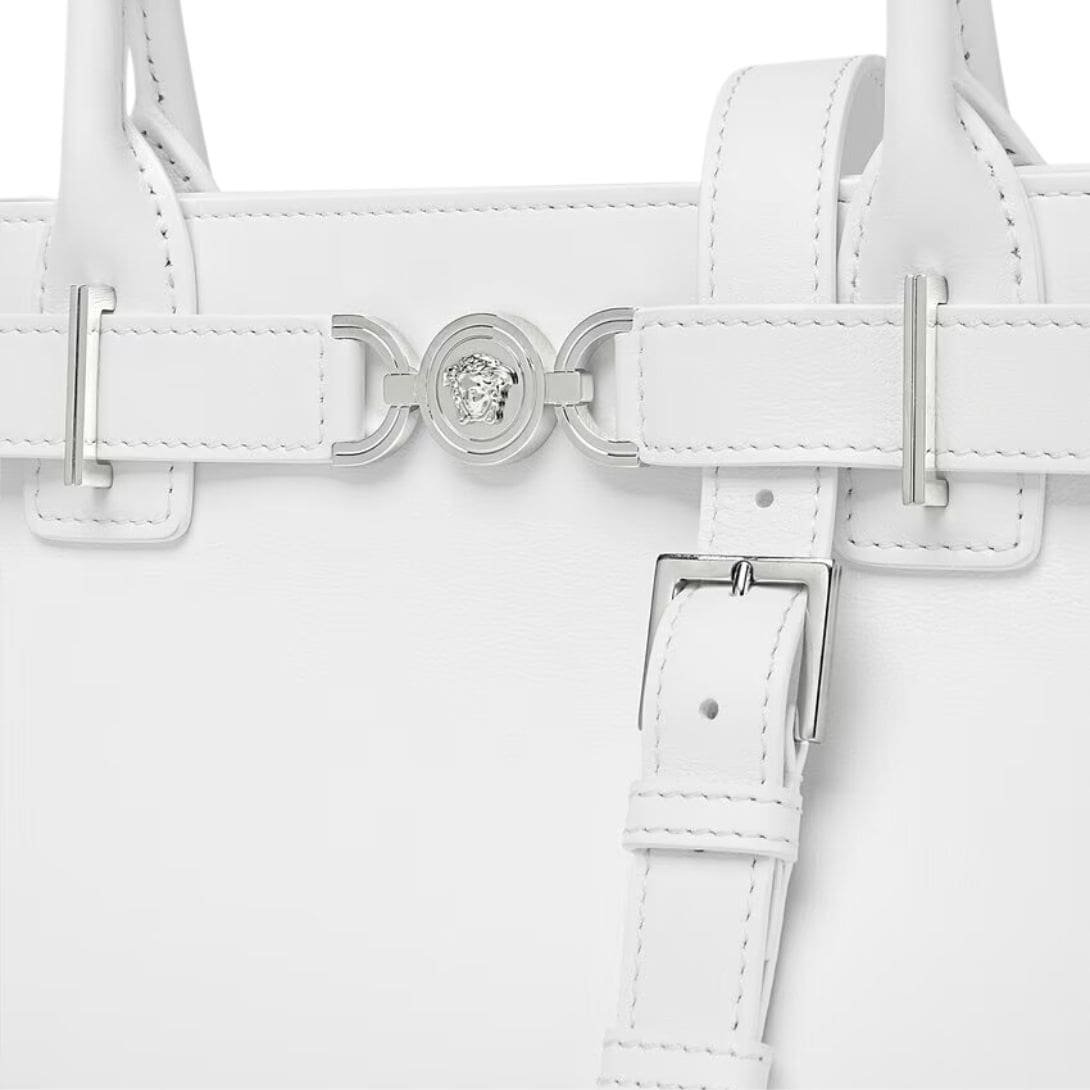 Crafted from high-quality, supple leather, the Medusa ’95 Tote Bag boasts a sleek and sophisticated silhouette. Its structured design ensures both style and practicality, making it an ideal accessory for the modern, fashion-forward individual. The bag is available in various colors, including classic black, vibrant red, and elegant white, each adorned with gold-tone hardware that enhances its luxurious appeal.