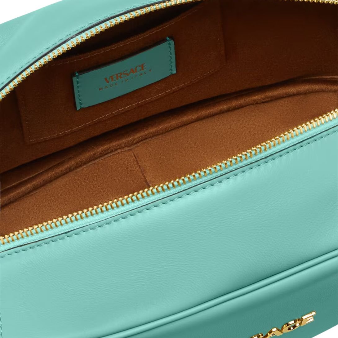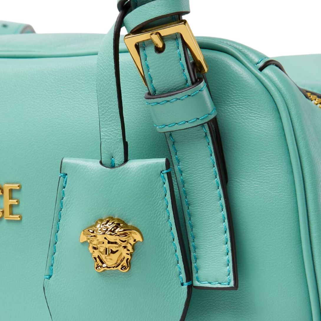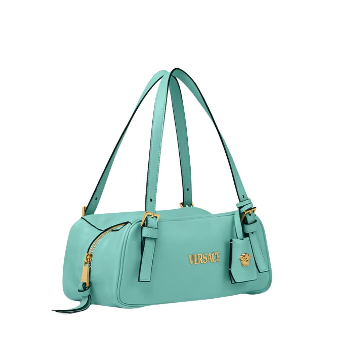VERSACE TAG BOWLING SHOULDER BAG TURQOISE