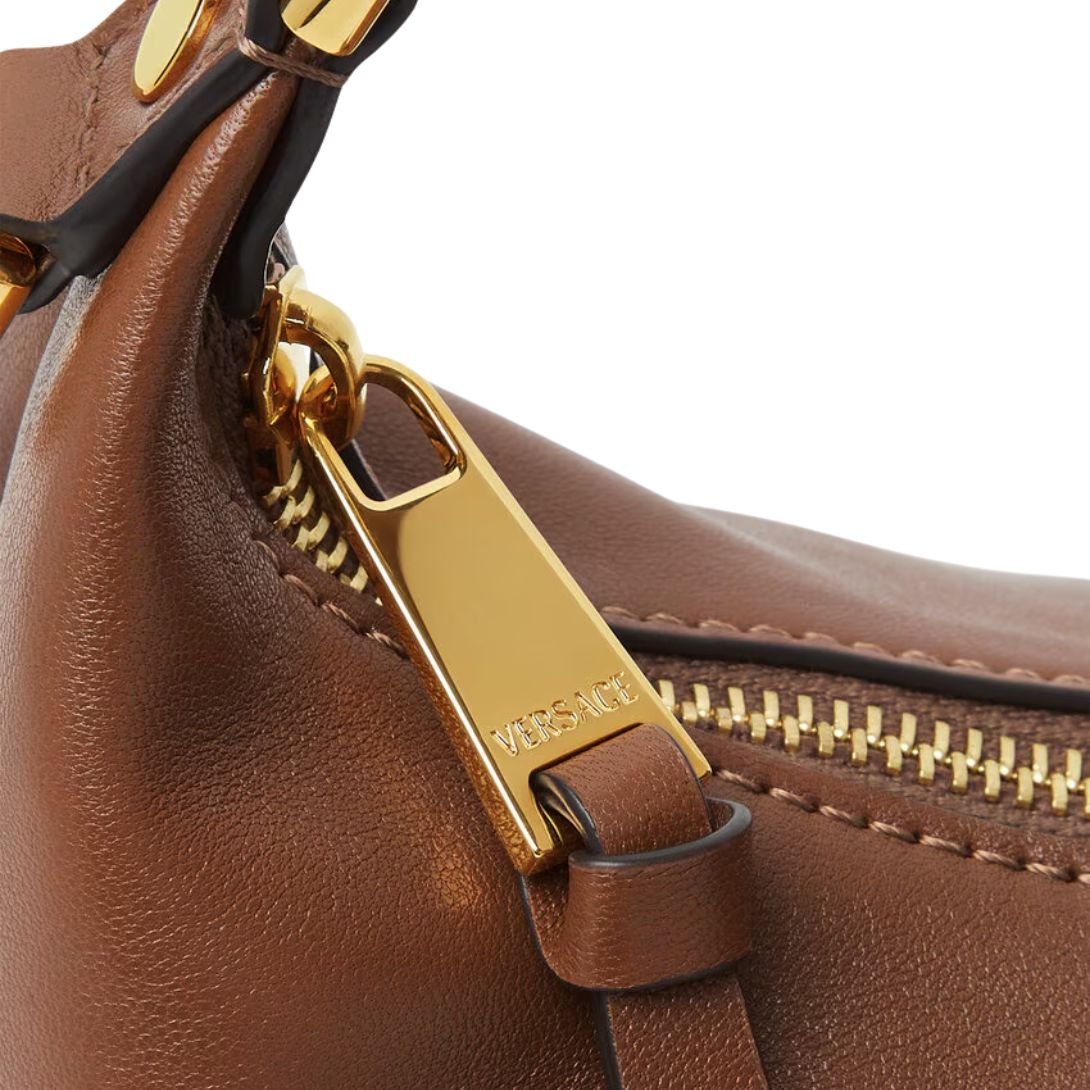 VERSACE TAG HOBO HANDBAG BROWN