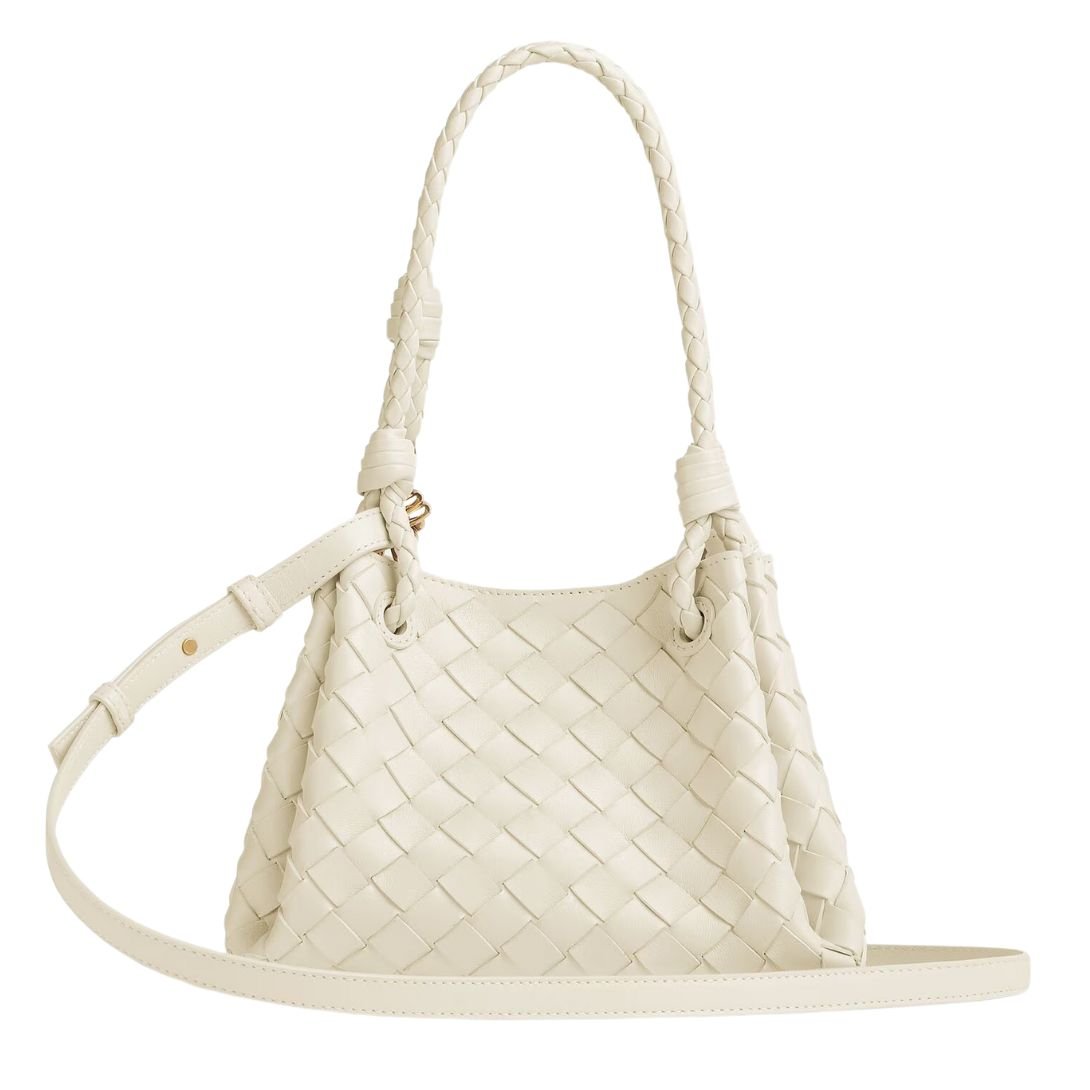 Designed for versatility, it features a detachable cross-body strap and comfortable top handles, offering multiple styling options. A magnetic tab closure secures the spacious main compartment, lined in bonded Intrecciato lambskin for a seamless, luxurious interior finish.