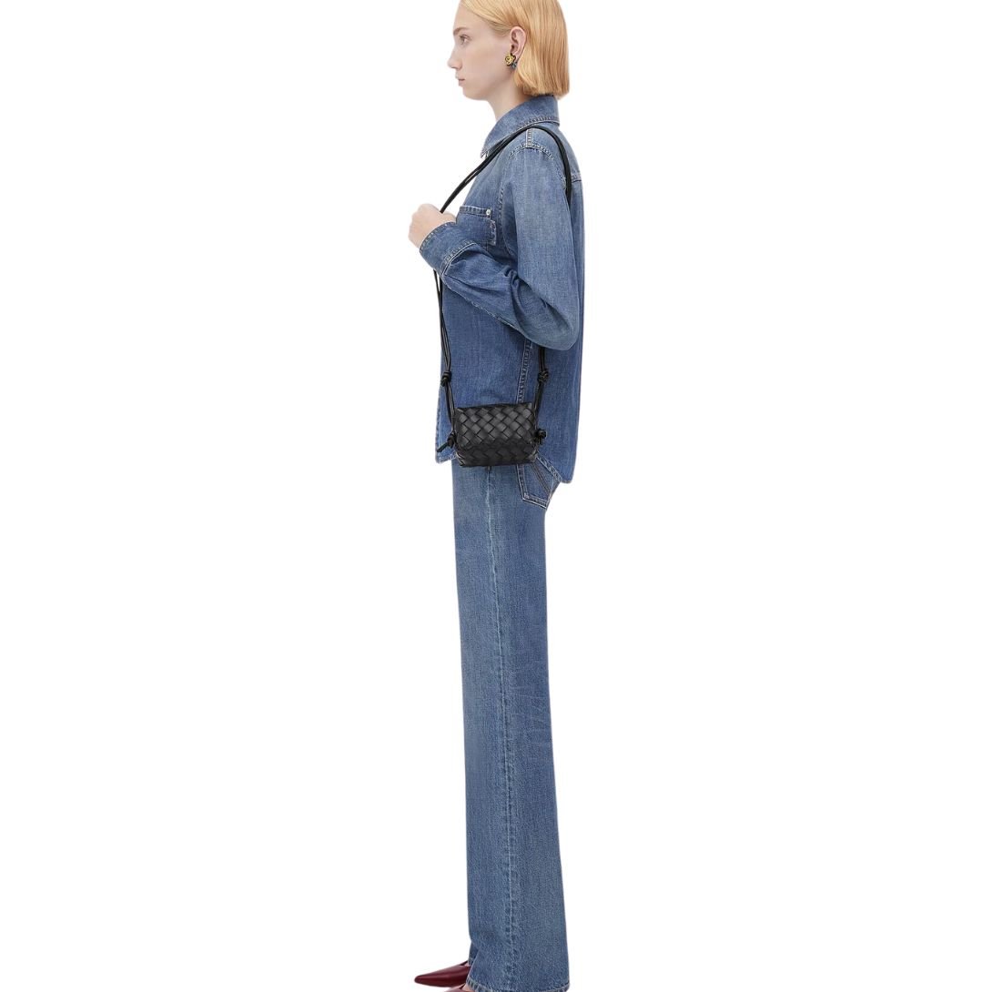 Petite in size yet rich in craftsmanship, the Candy Loop cross-body bag showcases Bottega Veneta’s artisanal mastery through its delicate Micro Intrecciato leather weave. Crafted in Italy from buttery-soft lambskin and finished with gold-tone hardware, this micro bag delivers elegance in its most compact form.