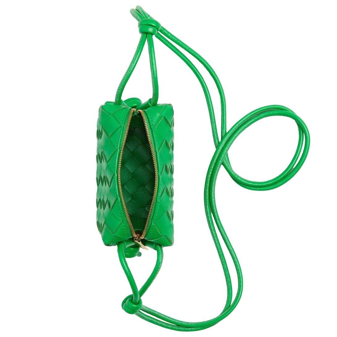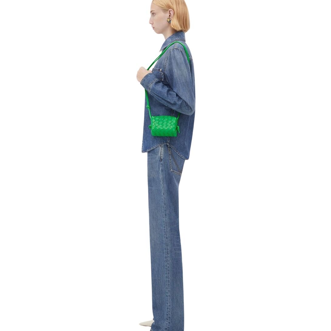 Petite in size yet rich in craftsmanship, the Candy Loop cross-body bag showcases Bottega Veneta’s artisanal mastery through its delicate Micro Intrecciato leather weave. Crafted in Italy from buttery-soft lambskin and finished with gold-tone hardware, this micro bag delivers elegance in its most compact form.