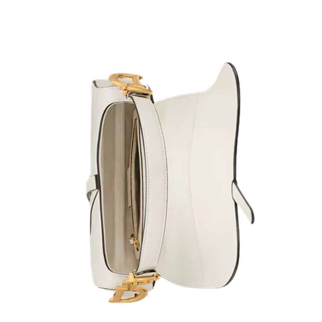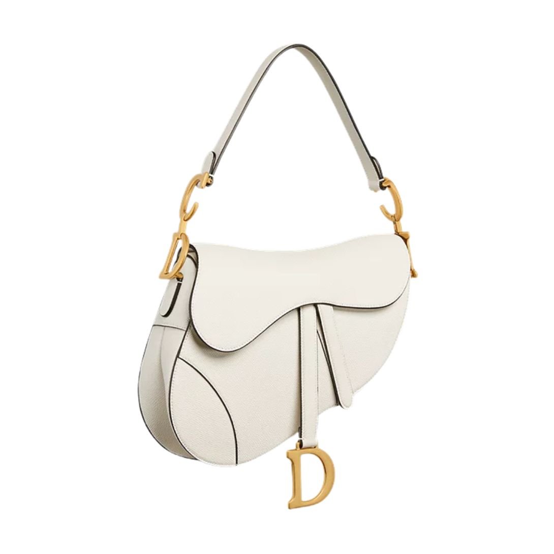 Reimagined under the visionary direction of Maria Grazia Chiuri, the Dior Saddle Bag returns with a refined modern sensibility while staying true to its legendary heritage. Originally debuting on the runway in the early 2000s, the Saddle bag has become a symbol of fashion-forward femininity—and this Latte grained calfskin version elevates the design with luxurious texture and subtle sophistication.