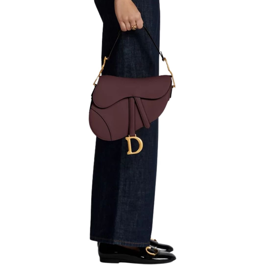 WOMEN DIOR LOGO SADDLE BAG PLUM
