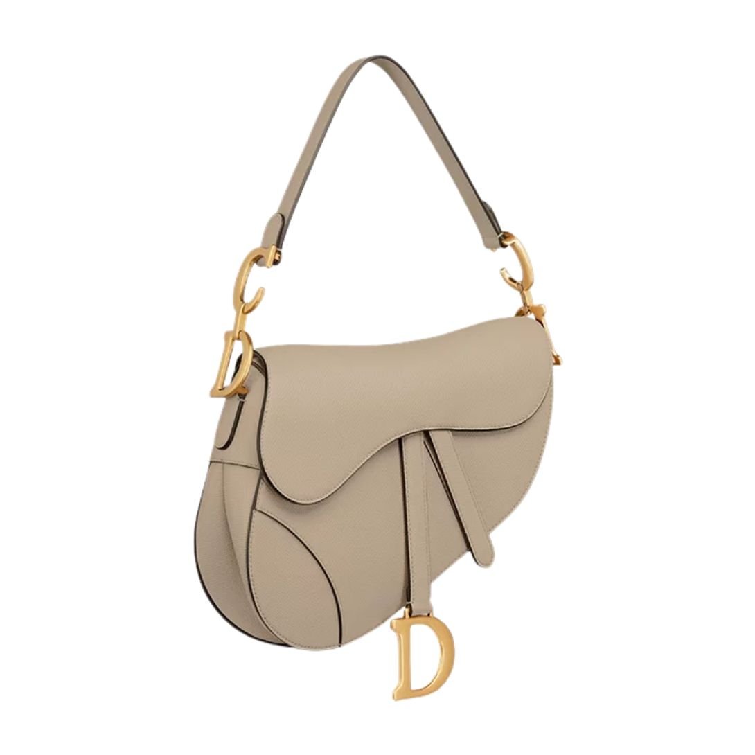 Reimagined under the visionary direction of Maria Grazia Chiuri, the Dior Saddle Bag returns with a refined modern sensibility while staying true to its legendary heritage. Originally debuting on the runway in the early 2000s, the Saddle bag has become a symbol of fashion-forward femininity—and this Latte grained calfskin version elevates the design with luxurious texture and subtle sophistication.