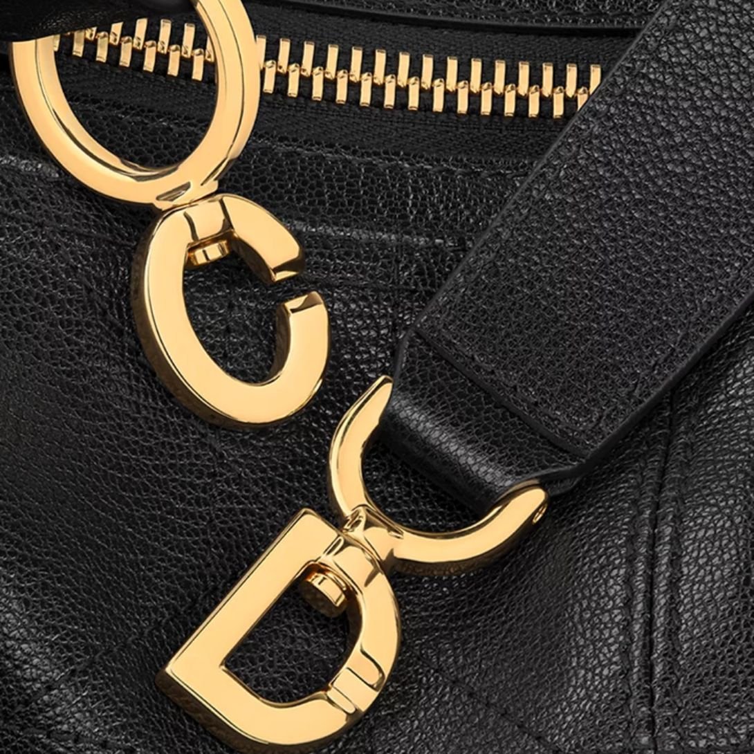 The D-Journey bag introduces a modern reinterpretation of the hobo silhouette with a bold, supple design. Crafted from luxurious black shiny goatskin, the bag is adorned with Flat Macrocannage topstitching, a contemporary homage to Dior’s signature motif. Its graceful curves and sculpted structure make it a standout everyday companion with refined edge.