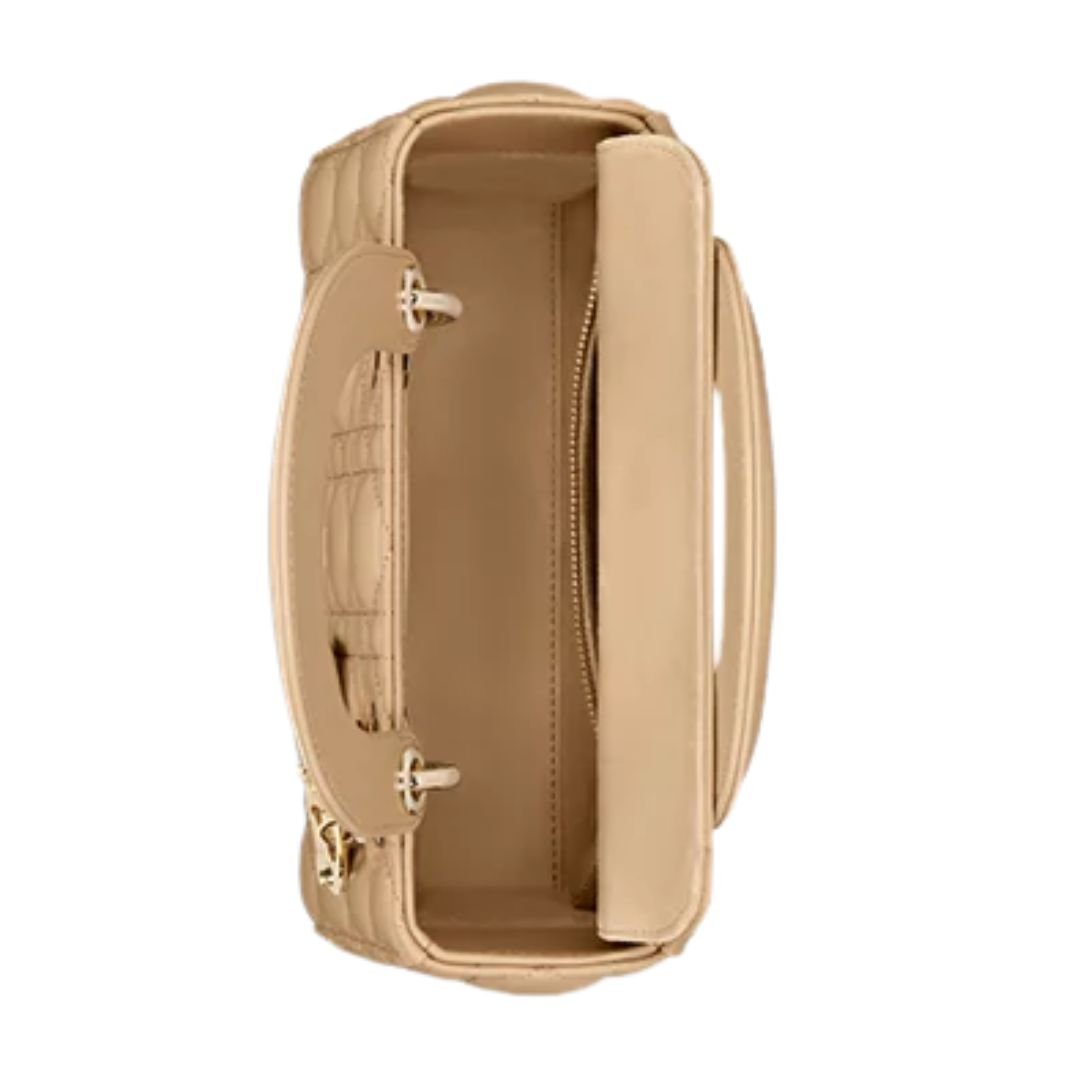 The Lady Dior My ABCDior Bag exemplifies the House’s dedication to timeless elegance and personalized style. Crafted in luxurious black lambskin, the bag showcases Dior’s signature Cannage stitching, forming the iconic quilted texture. The sleek silhouette is embellished with pale gold-finish D.I.O.R. charms, bringing a refined, feminine touch.