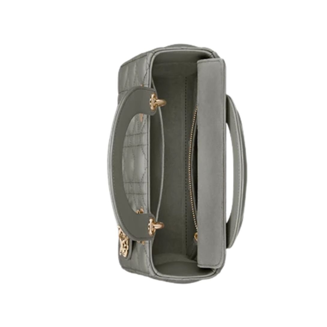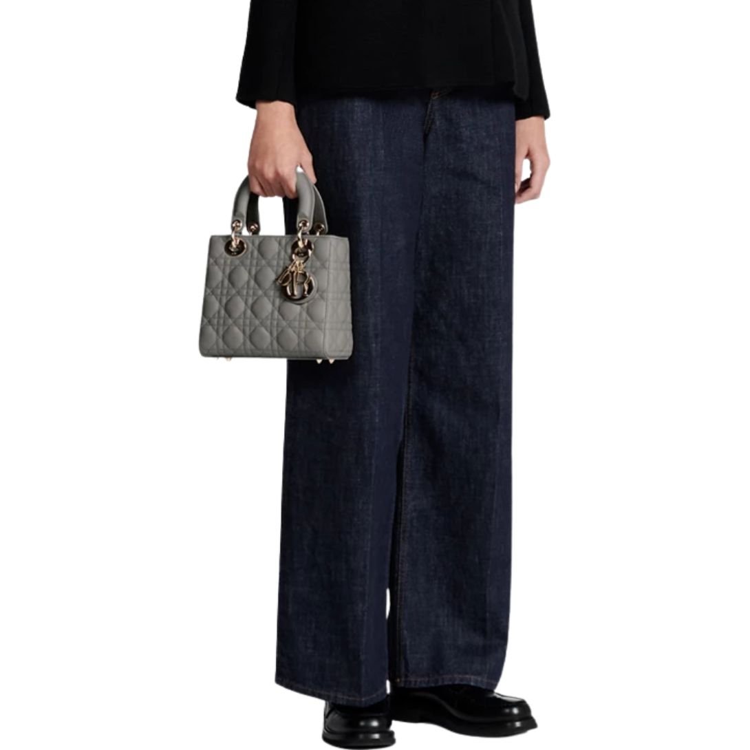 The Lady Dior My ABCDior Bag exemplifies the House’s dedication to timeless elegance and personalized style. Crafted in luxurious black lambskin, the bag showcases Dior’s signature Cannage stitching, forming the iconic quilted texture. The sleek silhouette is embellished with pale gold-finish D.I.O.R. charms, bringing a refined, feminine touch.