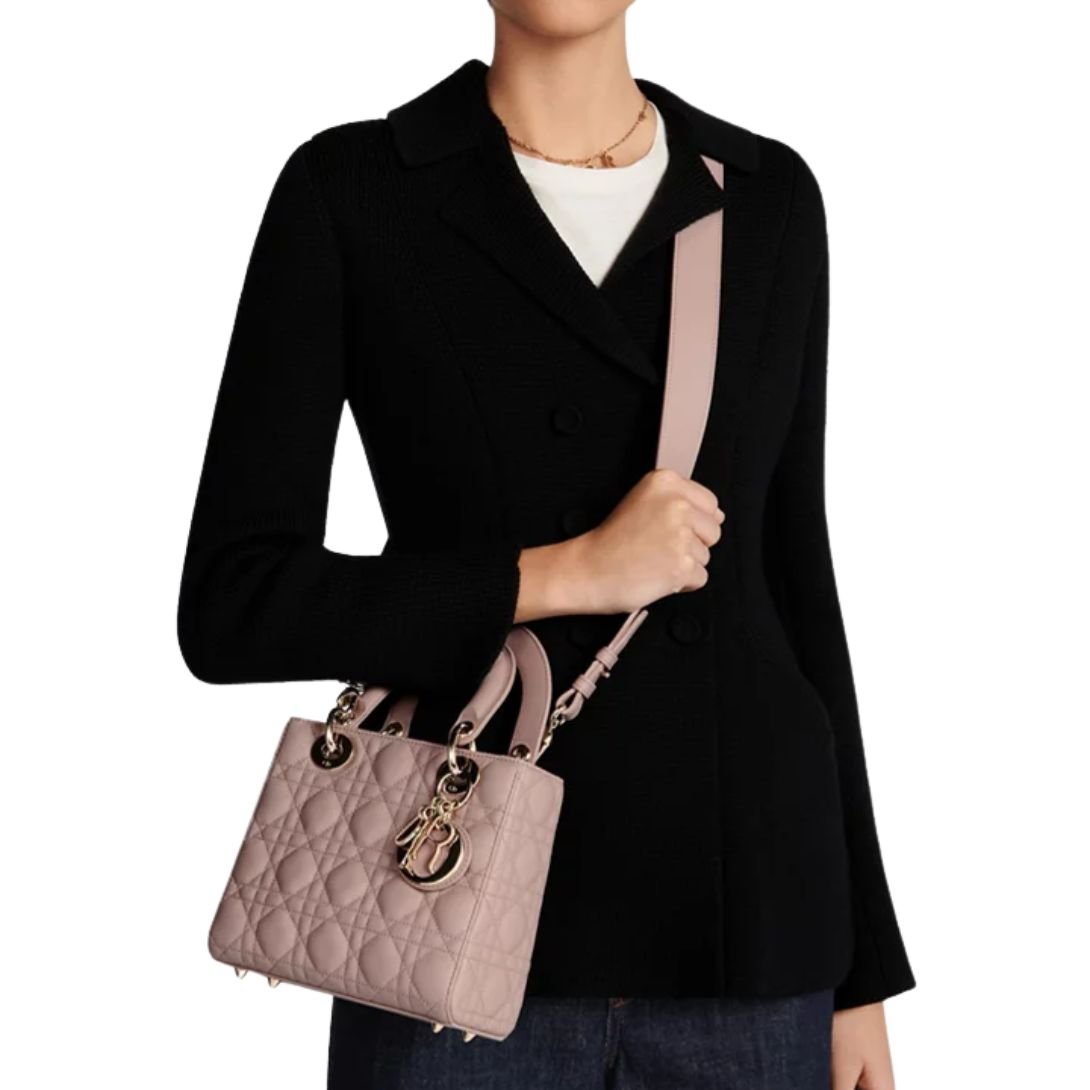 The Lady Dior My ABCDior Bag exemplifies the House’s dedication to timeless elegance and personalized style. Crafted in luxurious black lambskin, the bag showcases Dior’s signature Cannage stitching, forming the iconic quilted texture. The sleek silhouette is embellished with pale gold-finish D.I.O.R. charms, bringing a refined, feminine touch.