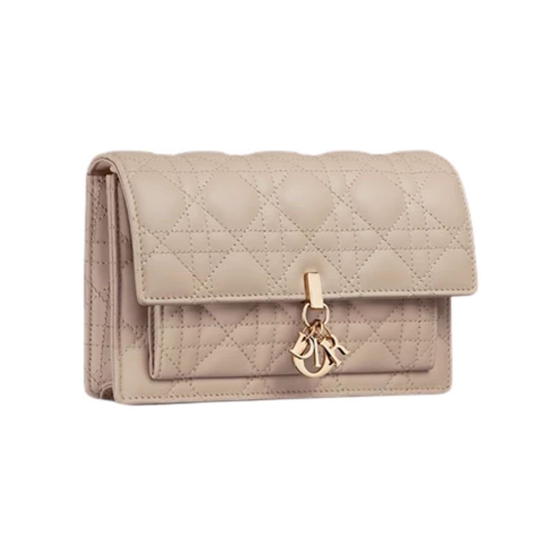 The My Dior Daily Pouch with Chain blends timeless elegance with everyday practicality. Crafted in black lambskin with signature Cannage stitching, it is embellished with iconic D.I.O.R. charms, offering refined appeal in a compact silhouette. Despite its sleek form, the pouch provides generous space through its thoughtfully organized compartments, making it perfect for daily use.