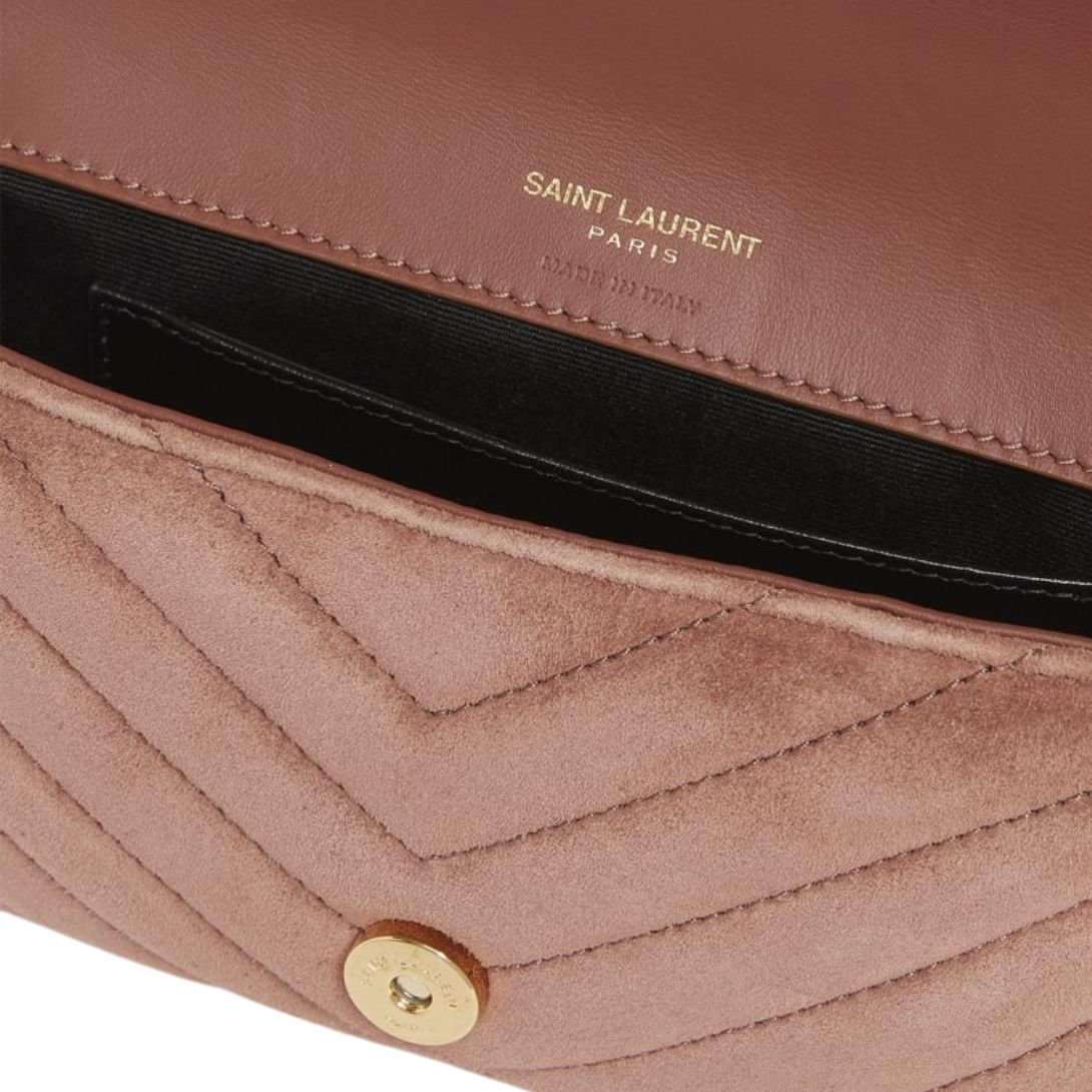 Made in Italy, the College bag combines high-quality materials with Saint Laurent’s impeccable attention to detail. The chevron-patterned suede adds texture and depth to the bag’s overall aesthetic, while the golden hardware beautifully contrasts with the rich suede. Its versatility makes it suitable for both day and evening wear.