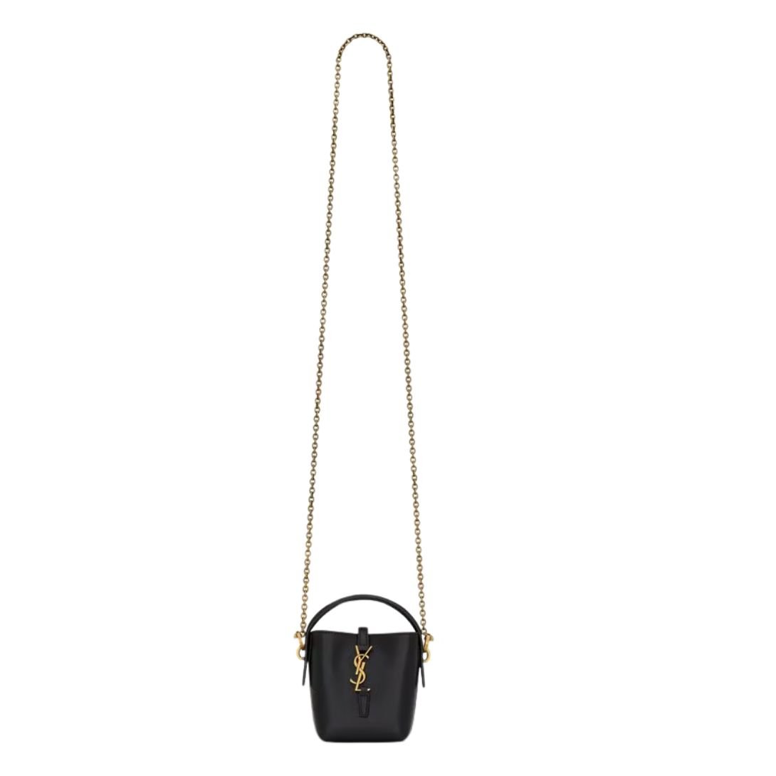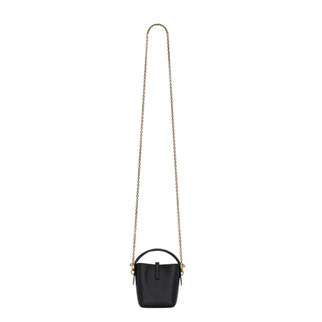 Crafted in premium calfskin leather, the micro bucket silhouette is adorned with the unmistakable metal Cassandre hook closure—an emblem of Saint Laurent’s timeless design legacy. Its petite frame is enhanced by the rich texture and structured form, making it the perfect finishing touch to both day and evening looks.