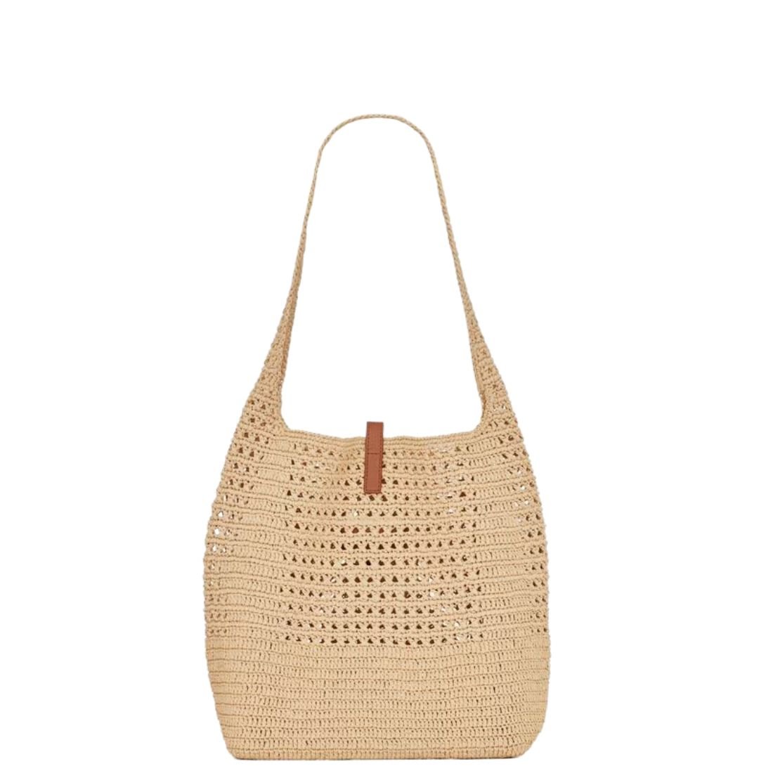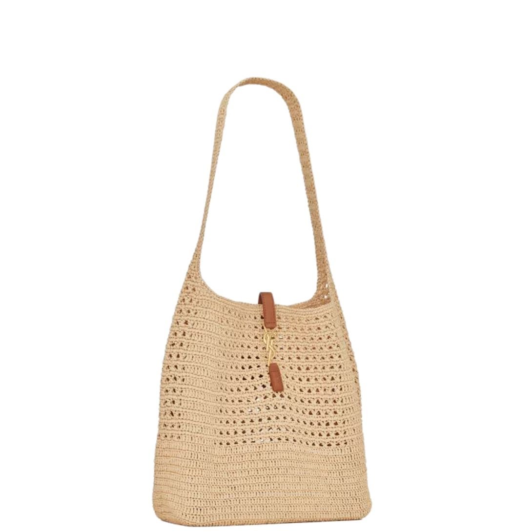 WOMEN SAINT LAURENT LE 5 A 7 IN RAFFIA CROCHET AND SMOOTH LEATHER NATURAL