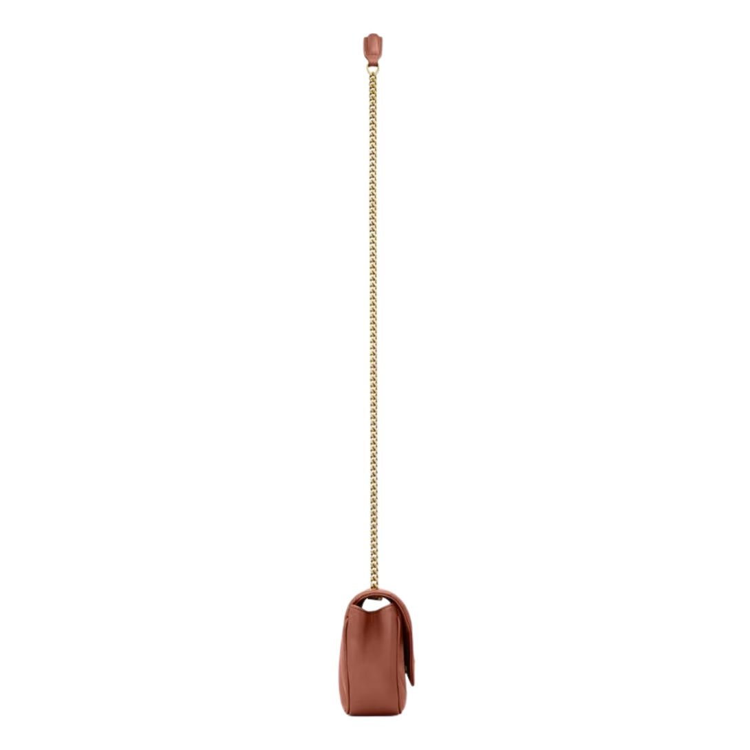 Perfectly sized for crossbody wear, this mini bag includes a leather-and-chain strap with a generous drop of 55 cm (21.6 in) for hands-free convenience. A removable leather pouch adds versatility for organizing essentials on the go.