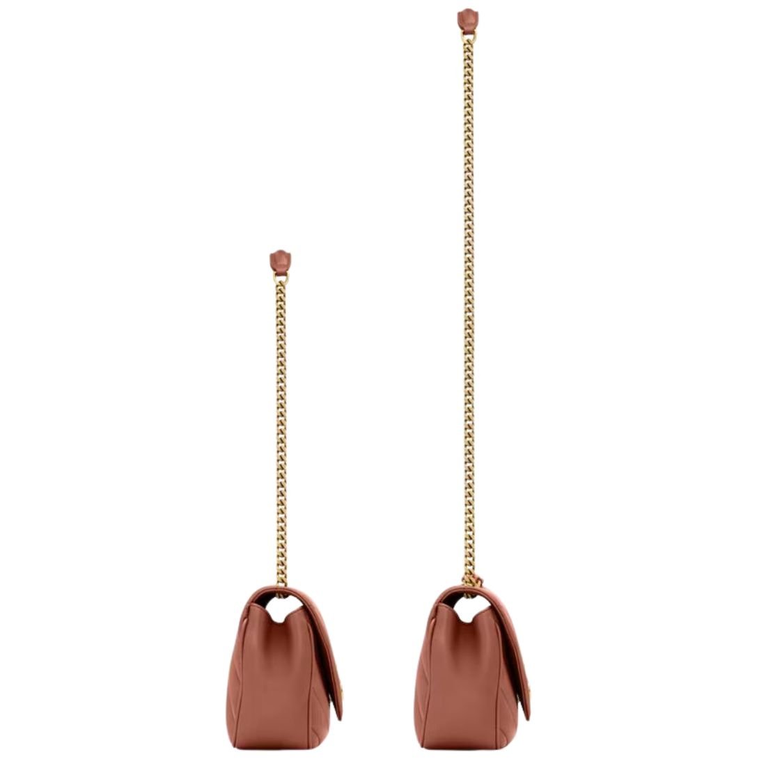 The bag includes a removable leather pouch and a compact pocket mirror, adding thoughtful utility to its luxurious design. A sliding chain strap allows you to wear it over the shoulder or as a crossbody, adapting seamlessly to your styling needs.