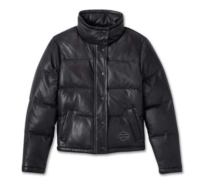 • Design Details: Split mandarin collar. Contrast leather stripes on sleeves.