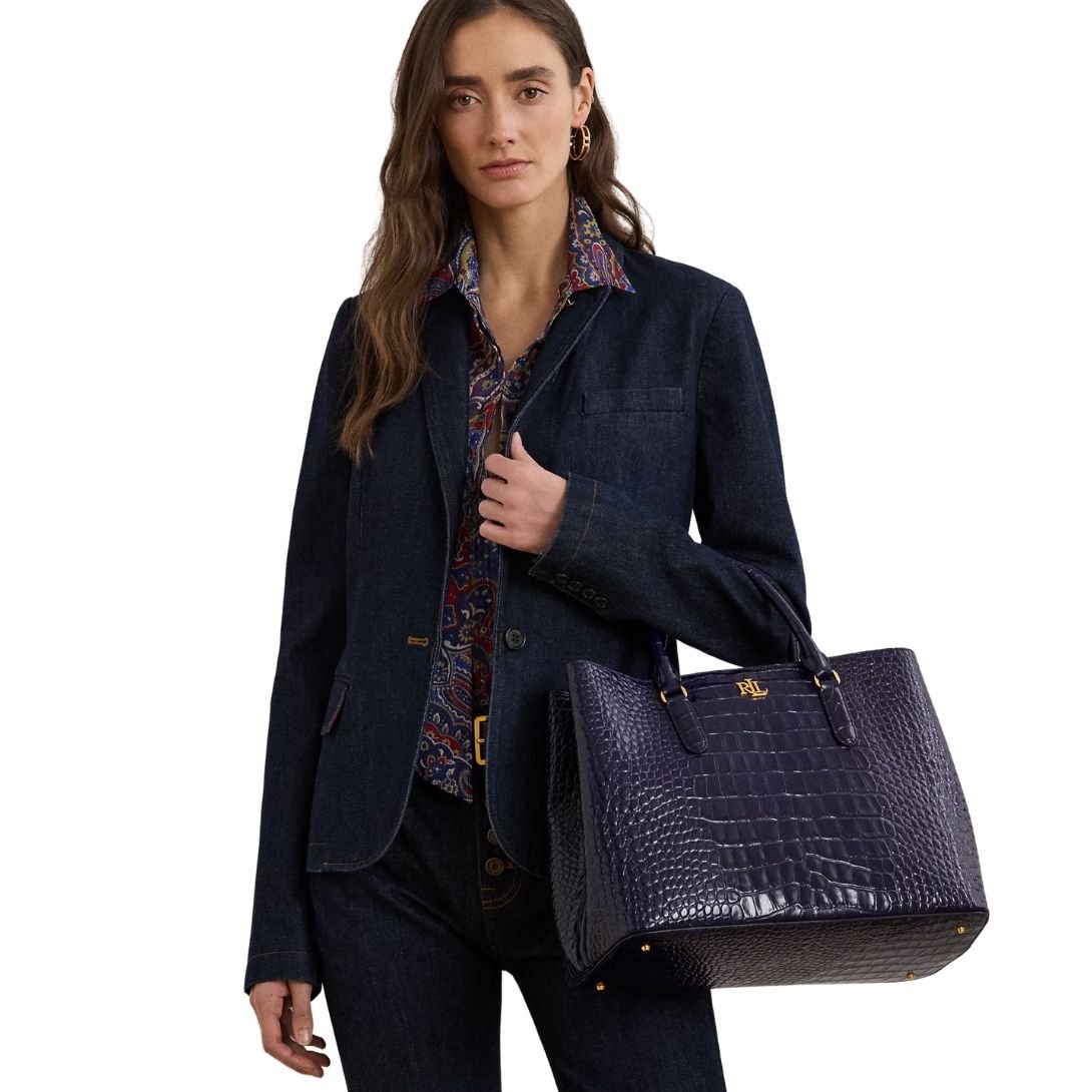 WOMENS LAUREN RALPH EMBOSSED LEATHER LARGE MARCY SATCHEL REFINED NAVY