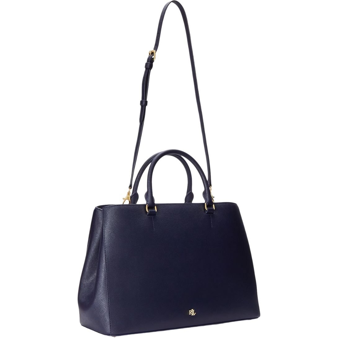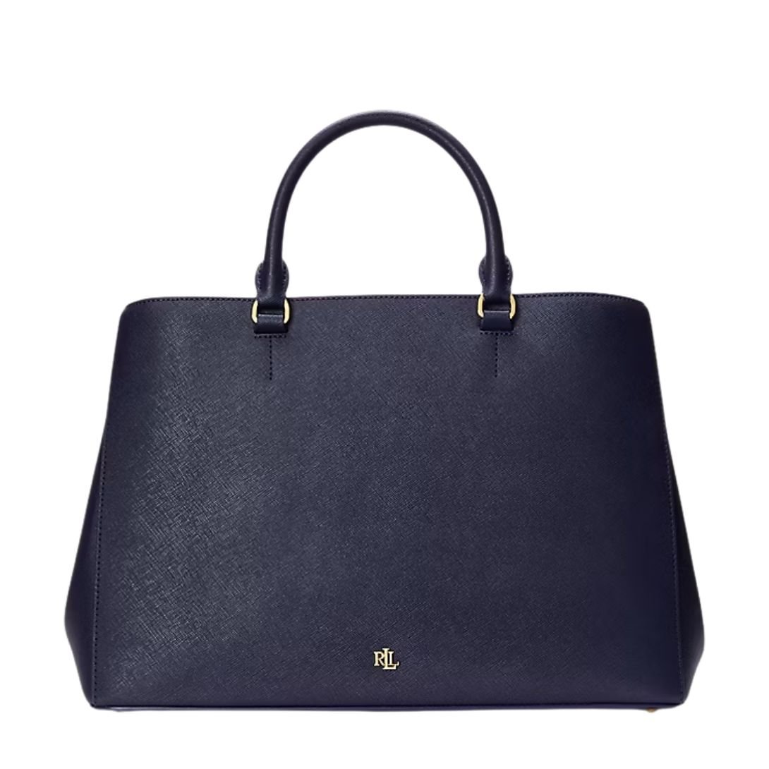 WOMEN’S RALPH LAUREN CROSSHATCH LEATHER LARGE HANNA SATCHEL REFINED NAVY