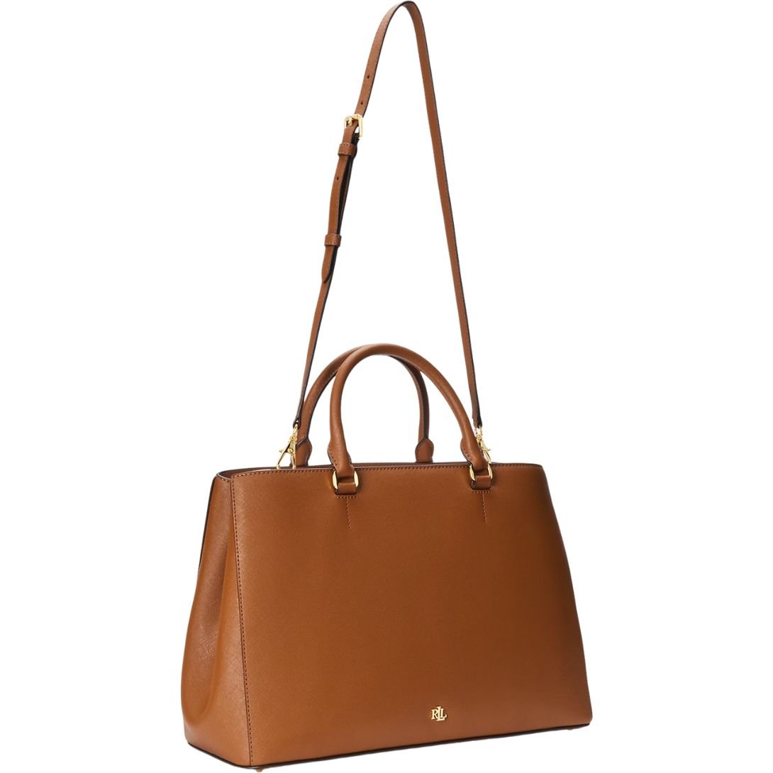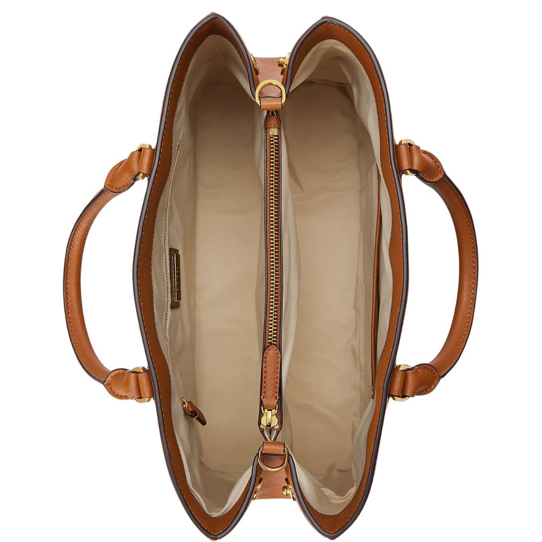 WOMEN’S RALPH LAUREN CROSSHATCH LEATHER LARGE HANNA SATCHEL TAN