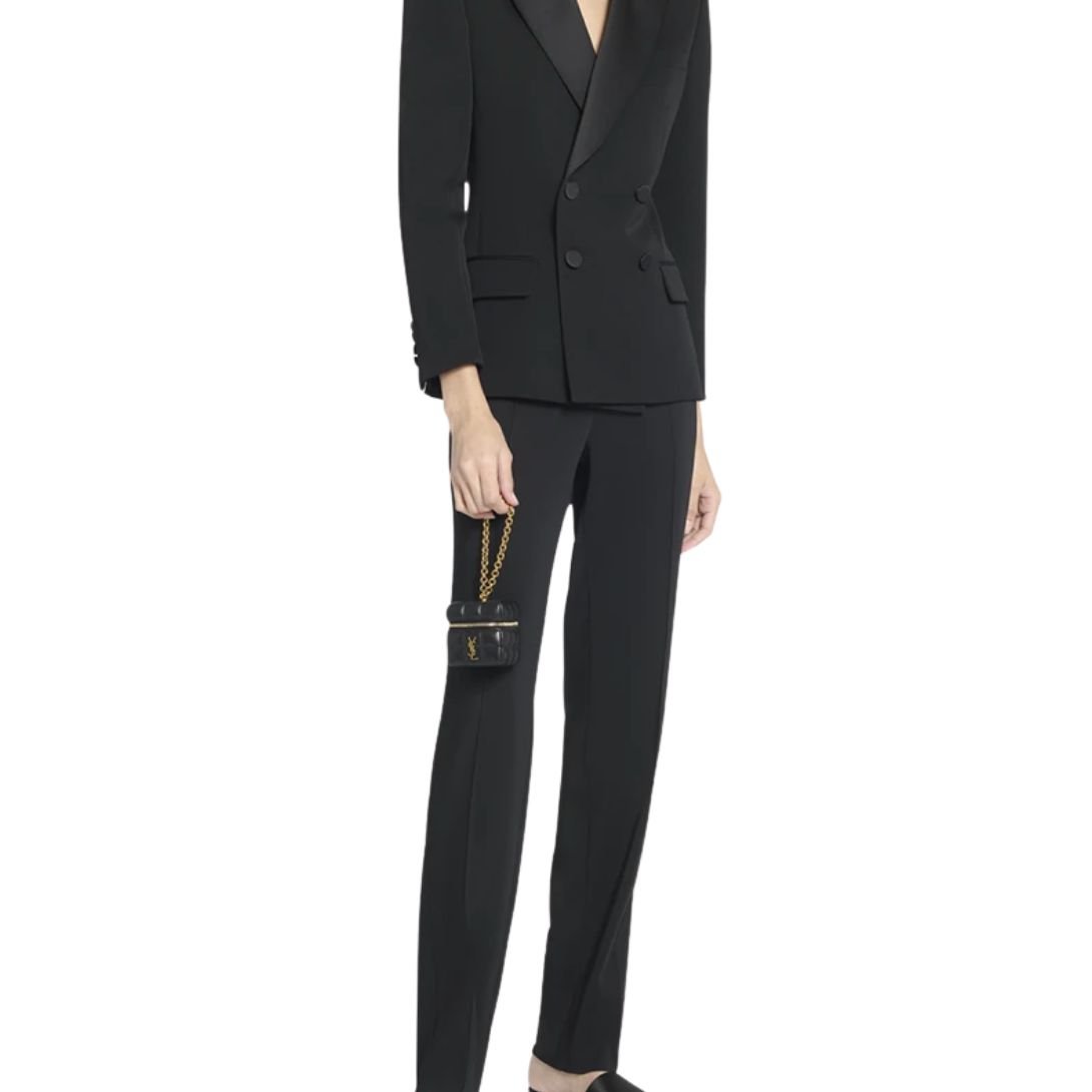 At the center of the design is the signature YSL logo lettering, a hallmark of timeless Parisian style. The golden hardware adds a striking contrast, enhancing the overall sophistication of the piece. Whether carried by hand or styled for an evening out, it brings statement appeal to any look.