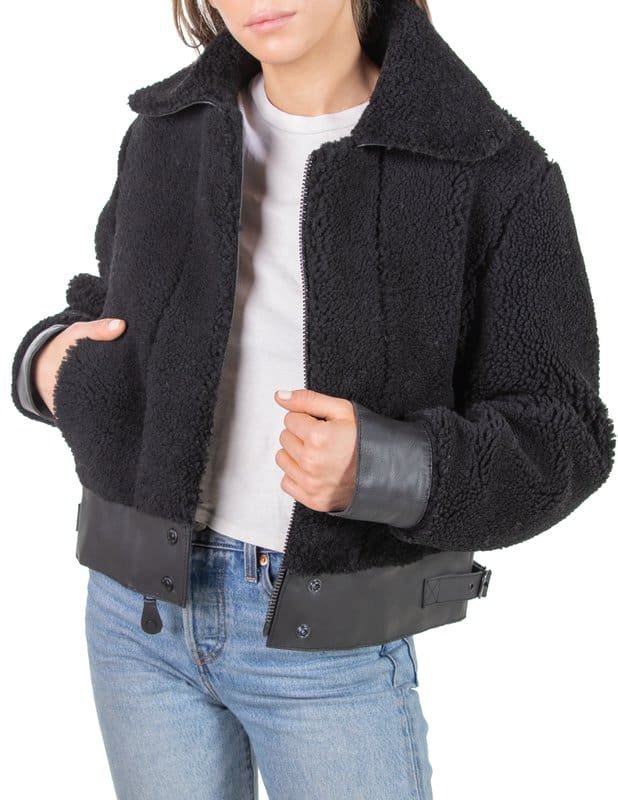 Women’s leatherized plush sheepskin military B-3 bomber jacke