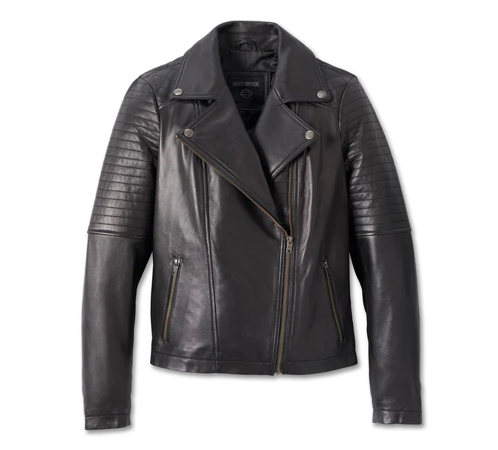 A clear winner in style and functionality. Made from midweight buffalo leather with a polyester mesh lining, this women’s leather jacket is fit for comfort and protection with a vented action back, a two-way zipper front, and body armor pockets. Finished with contrasting leather accents, color, and graphics that are a nod to retro and racing glory.